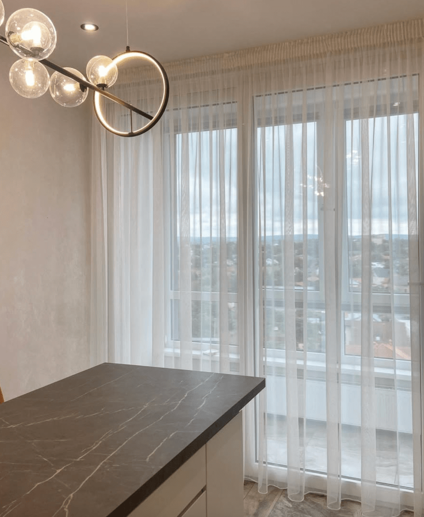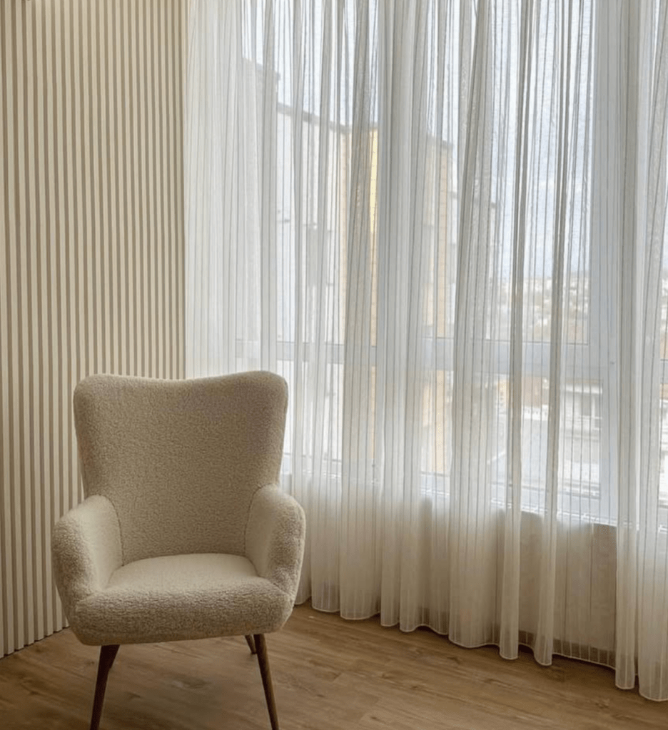 Nous réalisons des voilages sur mesure pour tout type d’intérieur, du plus minimaliste au plus classique. Chaque projet est pensé pour mettre en valeur vos fenêtres tout en respectant l’harmonie de votre espace.
