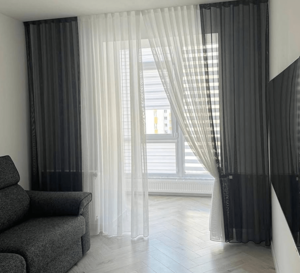 - Le voilage (léger et transparent) pour laisser entrer la lumière en douceur tout en protégeant l’intimité pendant la journée.